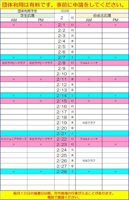 2月・団体利用抽選結果